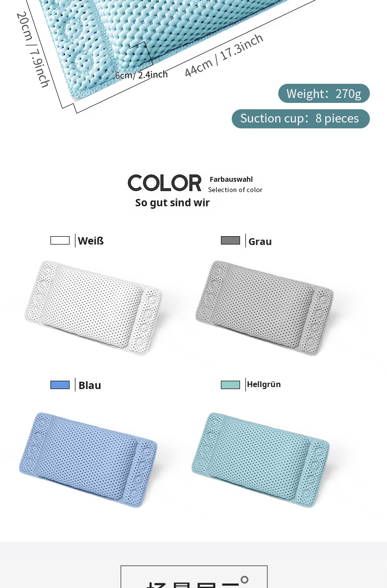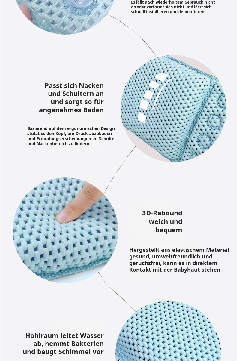 Badewannenkissen, Rückenkissen, Saugnapf, Badezimmerkissen, kleines Hotelbadewannenkissen, rutschfes